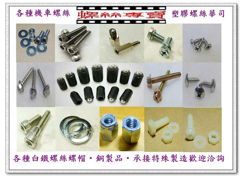 本企業批發零售各種材質螺絲塑膠螺絲,螺帽...